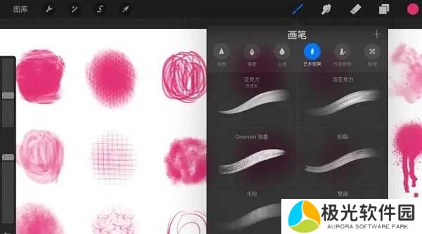画笔库支持自己编辑、制作画笔,也支持从外部导入画笔,在 的版本更新中还加入了对 Photoshop 画笔文件导入的支持。