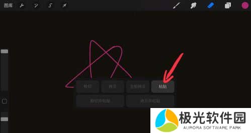 之后就可以看到其他的功能选项全部都不能点击全变黑色了,这是只能点击【粘贴】;