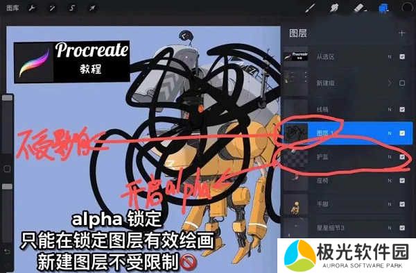alpha锁定,与图层锁定不一样,可以图层绘画修改。