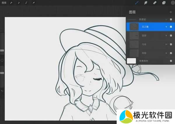 在 Procreate 中你可以对图层进行分组。从左向右滑动图层选项就能进行多选,右上角会出现「组」按钮进行编组;如果返过来从右向左滑动就能进行选择「锁定」「复制」「删除」,这个手势的逻辑在画笔库中也通用。