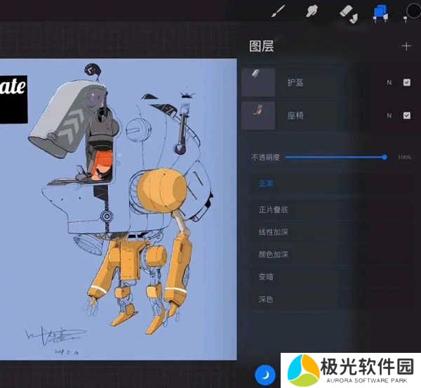 2、Procreate有丰富的图层并支持不同的图层叠加样式。PS常用的正片叠底啥的都支持,这在插画软件中很难得。另外图层锁定功能也很实用。举个例子,你在一个图层画了个实心圆,然后锁定图层,之后你在该图层画的内容就被限制在这个实心圆里了。这个功能在细节刻画的时候不会影响到其它区域,十分方便。