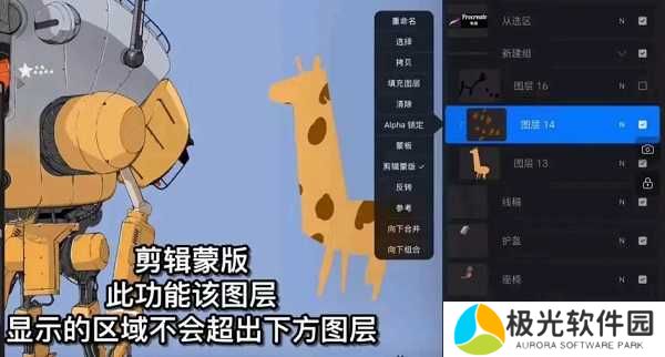 所以使用剪辑蒙版的图层会基于下图层的绘画区域的显示范围。
