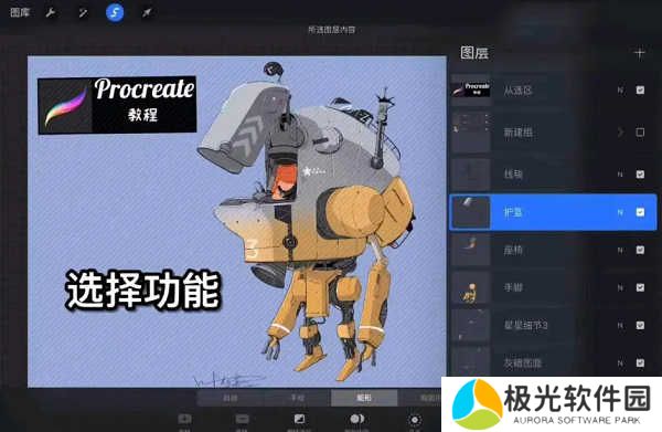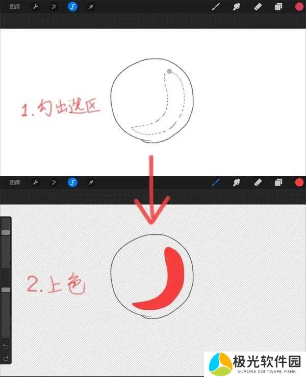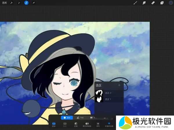 3、Procreate还有选区绘画功能,和图层锁定类似但更灵活。你可以用选区笔画出限定区域,这时候再用画笔绘画,同样不会超出圈定范围。