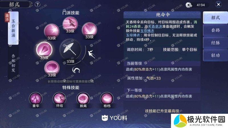 轻功如燕:提高移动速度和闪避率,使天香在战斗中更加灵活。