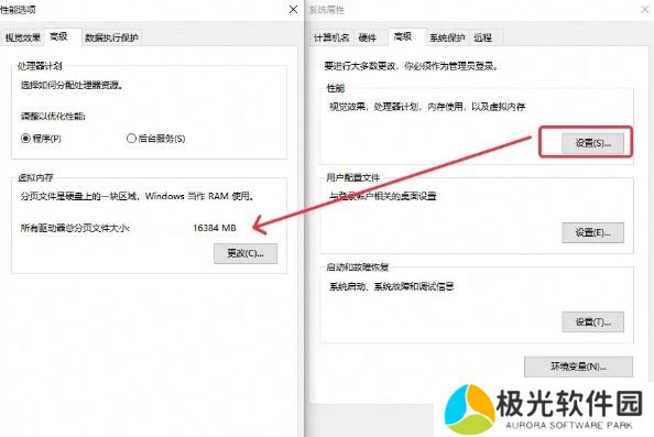 2.打开后再系统属性的高级页面中,点击性能分区的设置按钮。