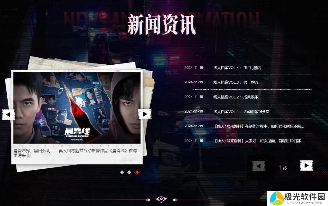 晨昏一线,善恶殊途!由儒意景秀和Enter Games联合打造的缉毒题材互动影像作品《晨昏线》,官网终于上线啦!在官网首页可以很方便地前往各大社区官方账号,方便获取后续的游戏动态。也全新开发了功能区,提供线人们更全面的信息。