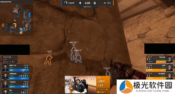 下半场Liquid来到进攻方,手枪局同样选择进攻A区,但是遇到GL四人重防,最终GL凭借枪位优势轻松拿下胜利。次回合Liquid强起再次进攻A区,同样的飞二楼战术被GL一波带走。比分顺势来到9-6。