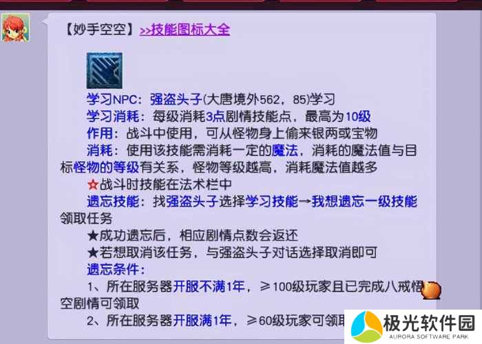 《梦幻西游》中的“妙手空空”是一个富有吸引力与神秘感的技能,它借鉴了许多仙侠类游戏中的“偷”机制,玩家通过此技能可以从怪物身上窃取物品,打破了传统RPG中单向物品获取的局限,丰富了游戏的玩法,增添了趣味。以下是关于妙手空空的详细攻略: