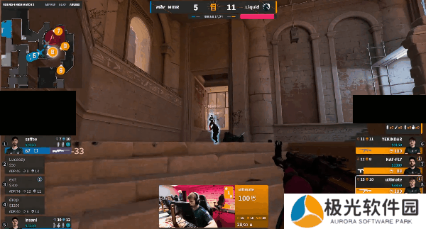 下半场Liquid来到进攻方,手枪局正门烟直接下管道,埋下炸弹后凭借枪位优势轻松拿下胜利。次回合MIBR强起,Liquid直接四人外场展开,拿到双杀后原地架枪,最后逐一击破MIBR,比分顺势来到9-6。