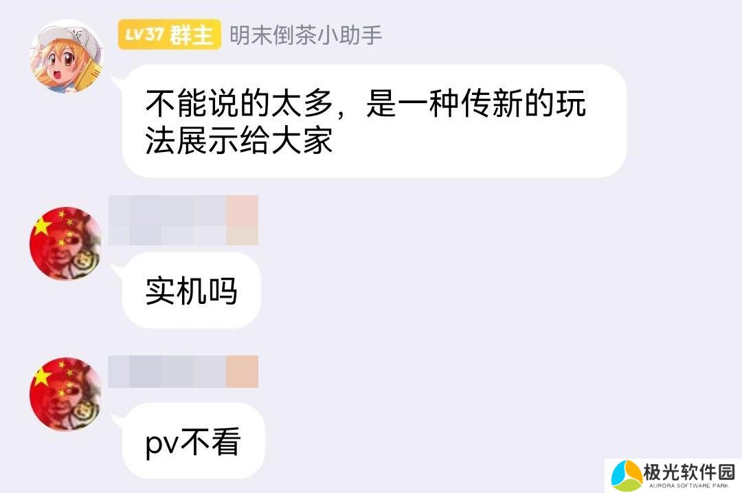 近日《明末》玩家群群主(据说是官方人员)爆料称:“今年过年会很热闹,敬请期待”。有玩家追问细节,他表示:“不能说得太多,是一种全新的玩法展示给大家。”