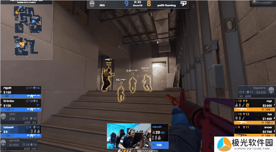 在第18回合中,tabseN选择绕后,在他面前的是paiN战队众多队员的背身。但台下的观众难掩激动,引发的声浪让paiN战队选手snow回头查看并击杀了tabseN。而对此tabseN也颇为无奈。最终paiN 13-10拿下了这张图。
