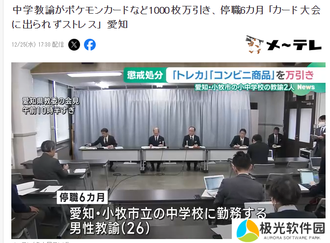 日前日本爱知小牧市立中学宣布,对一名涉嫌盗窃1000张宝可梦卡的正规教导员执行停职6个月的处罚,该名教师的自称犯罪理由是因堵车没赶上卡牌大赛,郁气难结而实施了盗窃。