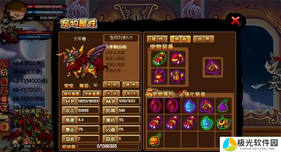 宠物具有不同的属性和技能,可以协助玩家战斗。