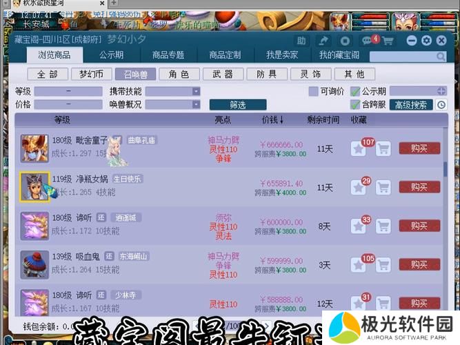 审核通过后,玩家可以在藏宝阁中看到自己的角色已经上架。