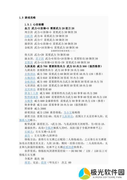 三、武功修炼与技能搭配