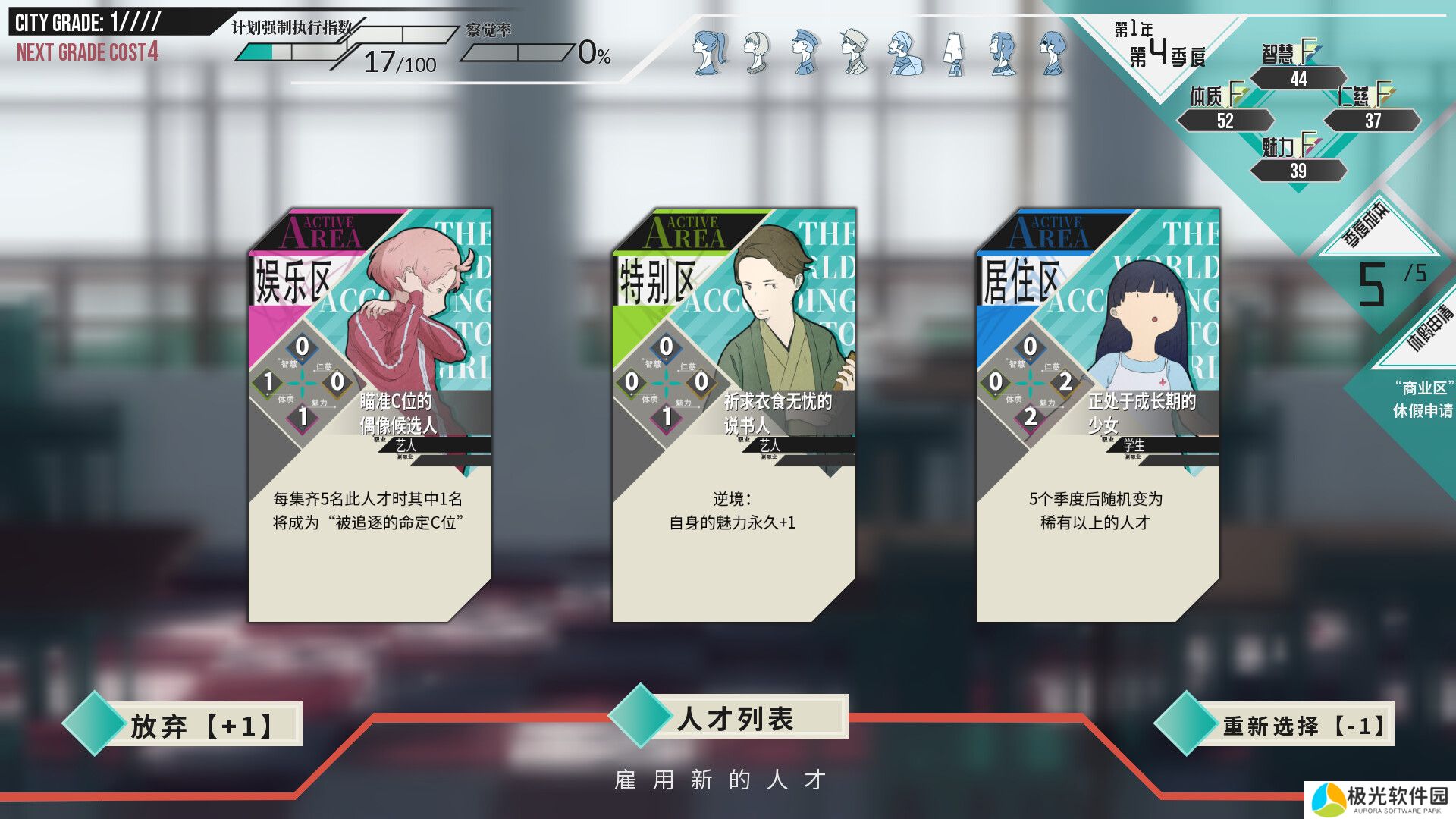 您将成为一名管理官,选择每个回合出现的具有各种效果的「人才(卡牌)」来培养少女,将她培养成为救世主。