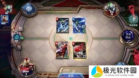 第四回合购买钢铁侠并放到最右边,利用其穿甲能力先手摧毁对面战力最低的角色。
