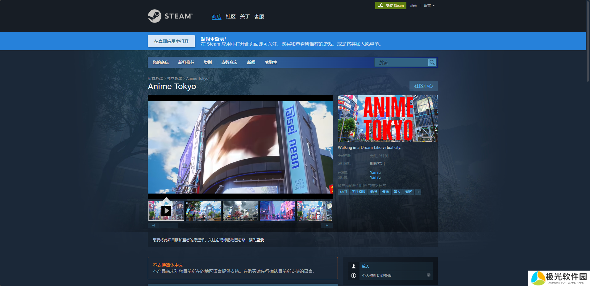 《Anime Tokyo》是一款现代城市模拟游戏,而这款游戏的官网地址就是Steam平台的购买页面,进入到这个游戏的购买页面基本上就能知道所有这款游戏的信息。