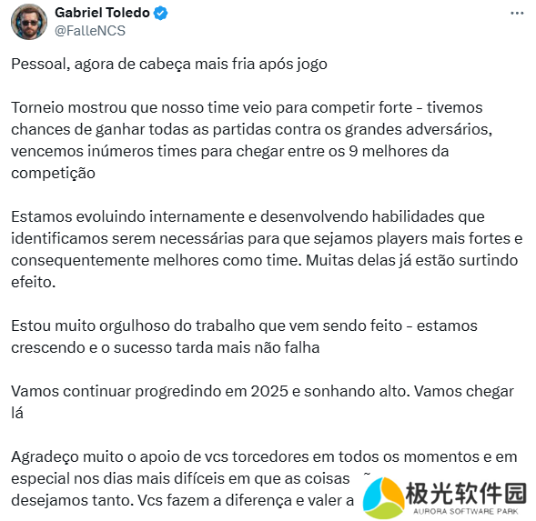 FURIA战队指挥FalleN就队伍被淘汰出局一事发表了自己的看法。在个人社交媒体账号上,巴西教父表示战队正在进步过程中,为队伍目前取得的成果感到自豪。