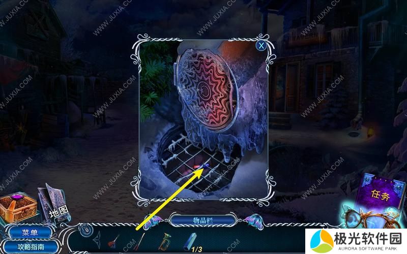使用获得的钥匙打开上锁的宝箱,宝箱内藏有高倍放大镜。