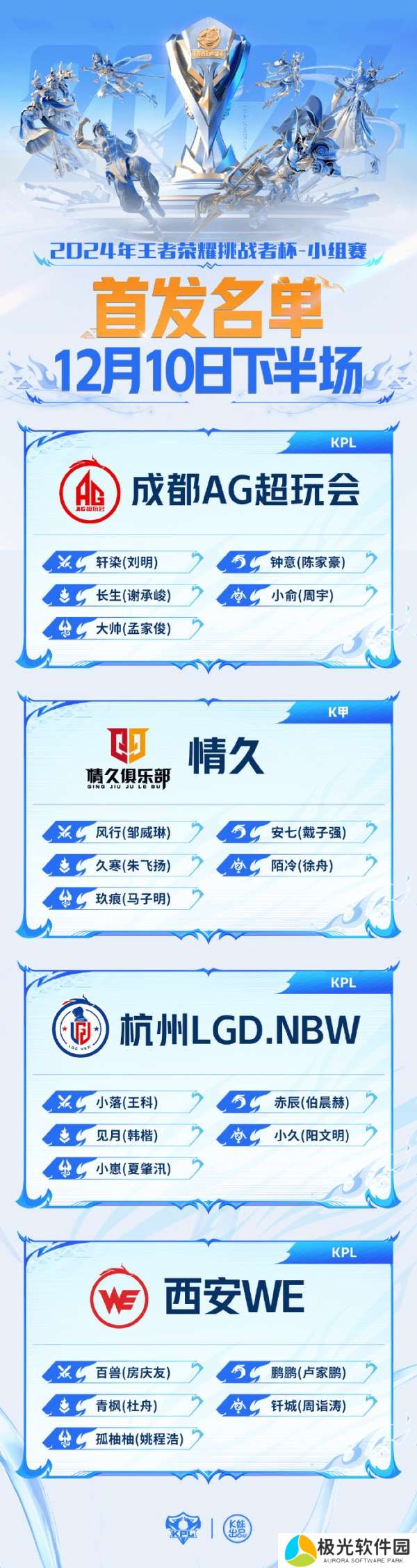 2024年王者荣耀挑战者杯 小组赛W1D4【首发名单】送达 !