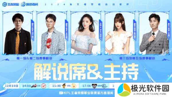 解说席&主持人:解说美梦 (闵子端)、解说老王ww (王华斌)、灵儿chili (刘宁)、解说琪琪 (杨泽琪)、解说潇洒洒 (李潮)