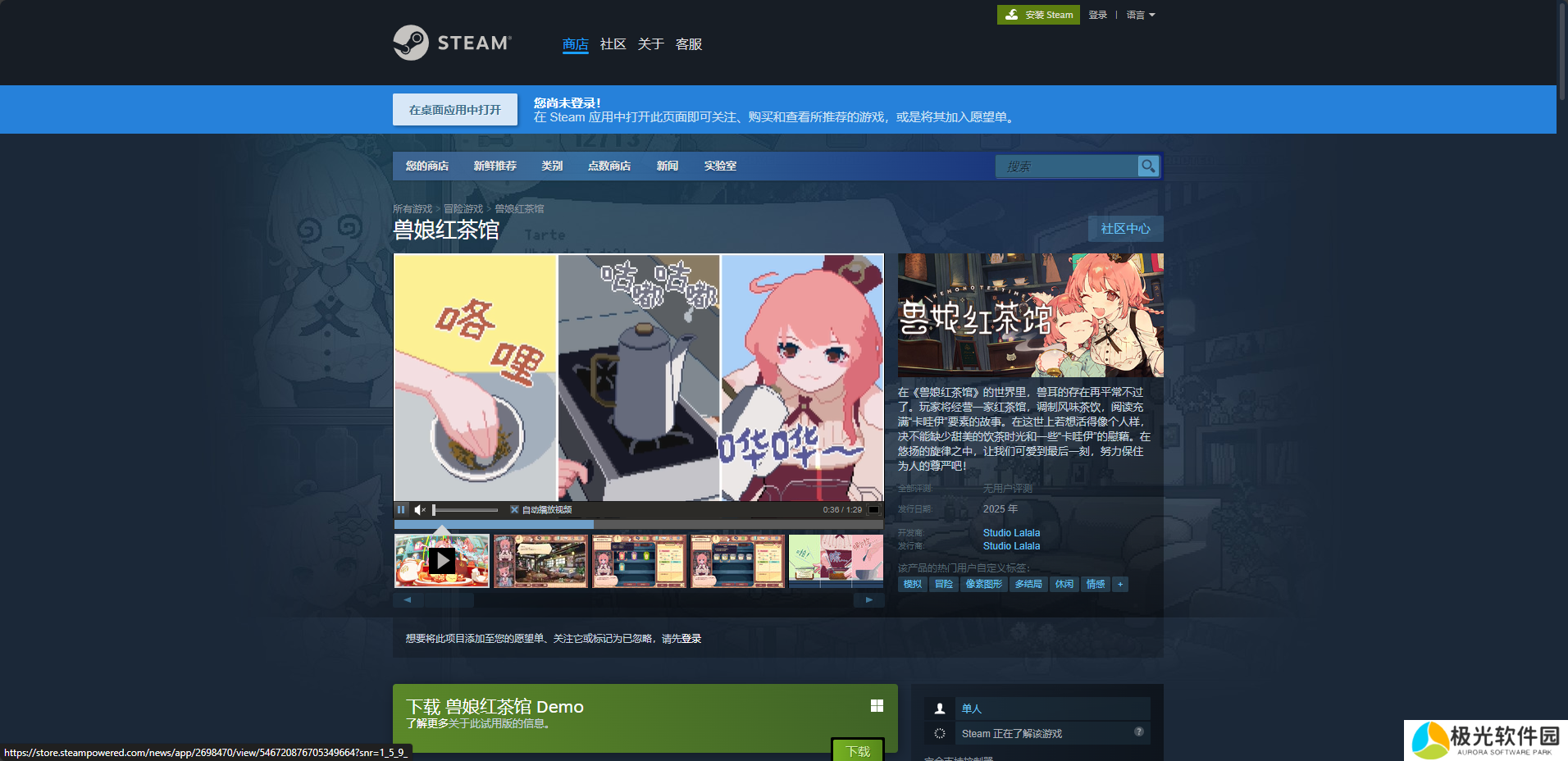 Steam平台需要先安装Steam平台,之后注册一个账号登录,然后搜索“兽娘红茶馆”进入商店购买页面。