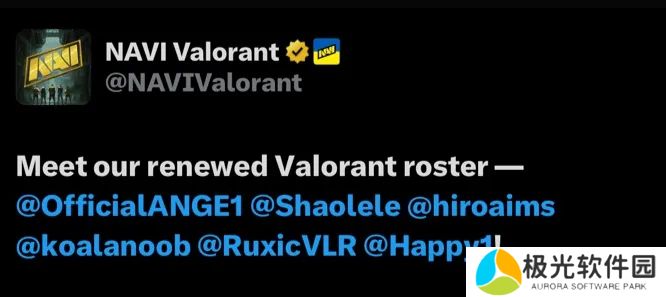 NAVI官方宣布2025赛季全新阵容,ANGE1和Shao继续留队,新加入的三位选手分别是hiro、koalanoob和Ruxic。