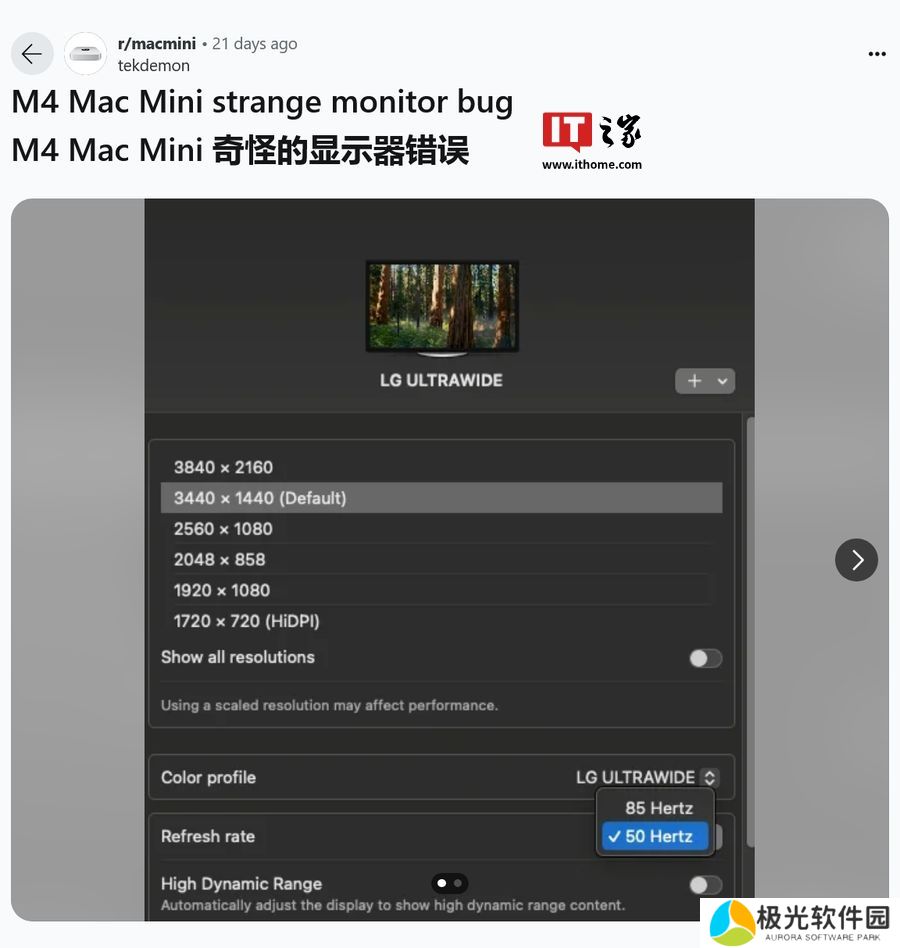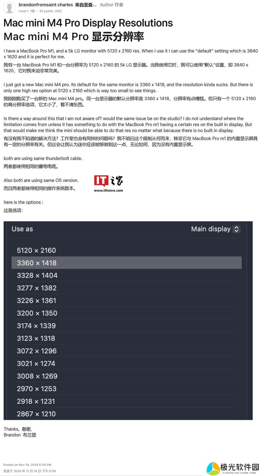 Mac mini 用户报告的问题较多,但 M4 MacBook Pro 用户也反馈遇到了类似问题。部分用户表示,在 M1 MacBook Pro 上可以正常使用 HiDPI 选项,但在 M4 MacBook Pro 上则无法使用。