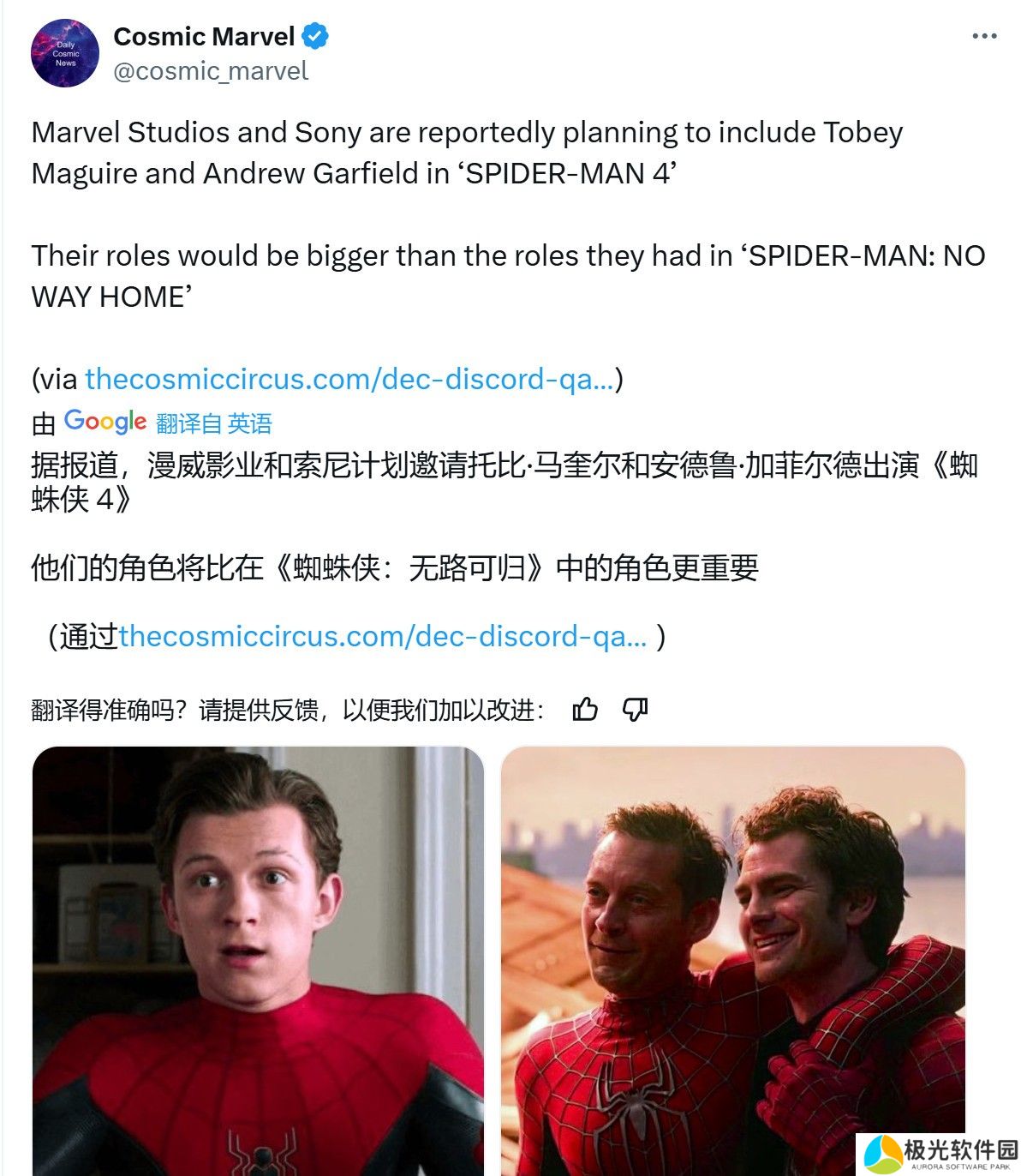 这是否意味着《蜘蛛侠4》将和《蜘蛛侠3》那样邀请托比马奎尔和安德鲁加菲回归饰演老版蜘蛛侠?消息称,如果回归,那么两人的戏份将比《蜘蛛侠3》的更重要。