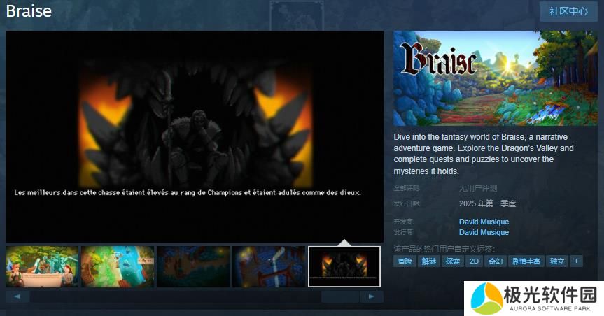 今日(11月23日),奇幻叙事冒险游戏《Braise》Steam页面开放,游戏暂不支持中文,预计于2025年第一季度发售,感兴趣的玩家可以点击此处进入商店页面。