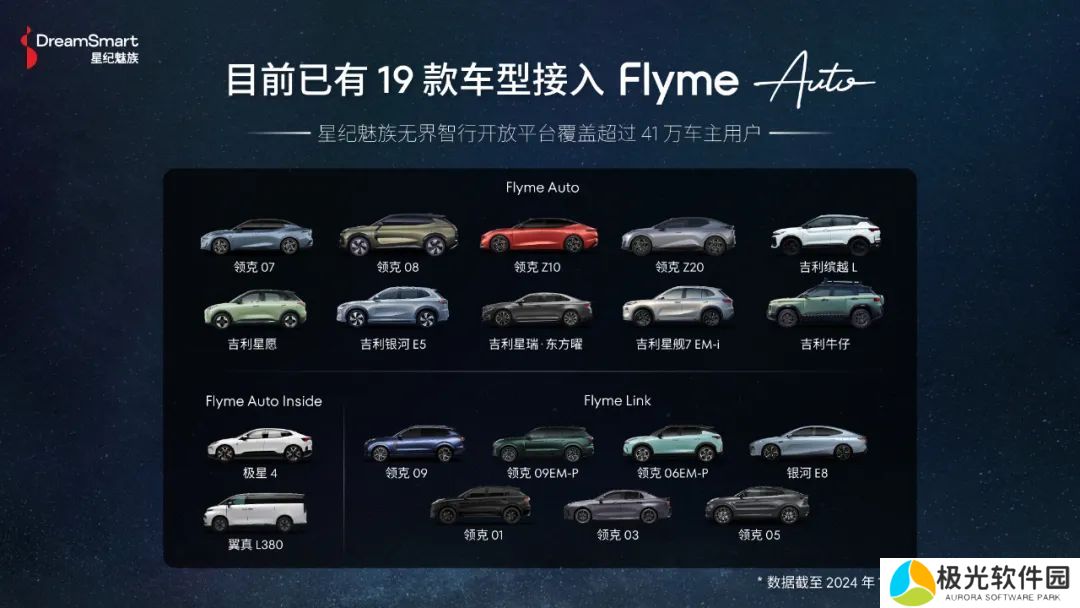 据介绍,目前 Flyme Auto 已接入吉利、领克、银河等多个品牌的 19 款车型,截至 2024 年 12 月,覆盖车主用户超 41 万。