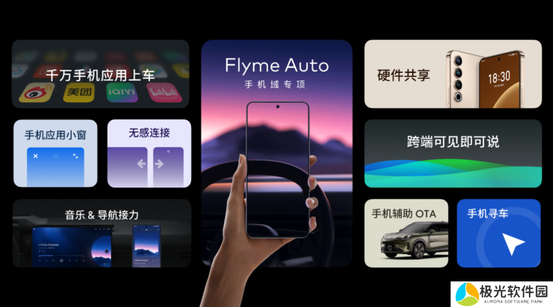 本站此前报道,星纪魅族Flyme Auto 车载软件系统发布于 2023 年 3 月,支持无缝接力、手机辅助 OTA、手机-汽车硬件互通共享硬件能力,支持手机寻车,支持平行视窗、小窗展示、跨端可见即可说等软件功能。