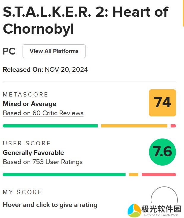 《潜行者2》最近发售了,然而该作在Metacritic上媒体均分只有74分,引来Arkane工作室(《耻辱》系列)创始人Raphael Colantonio的不满。