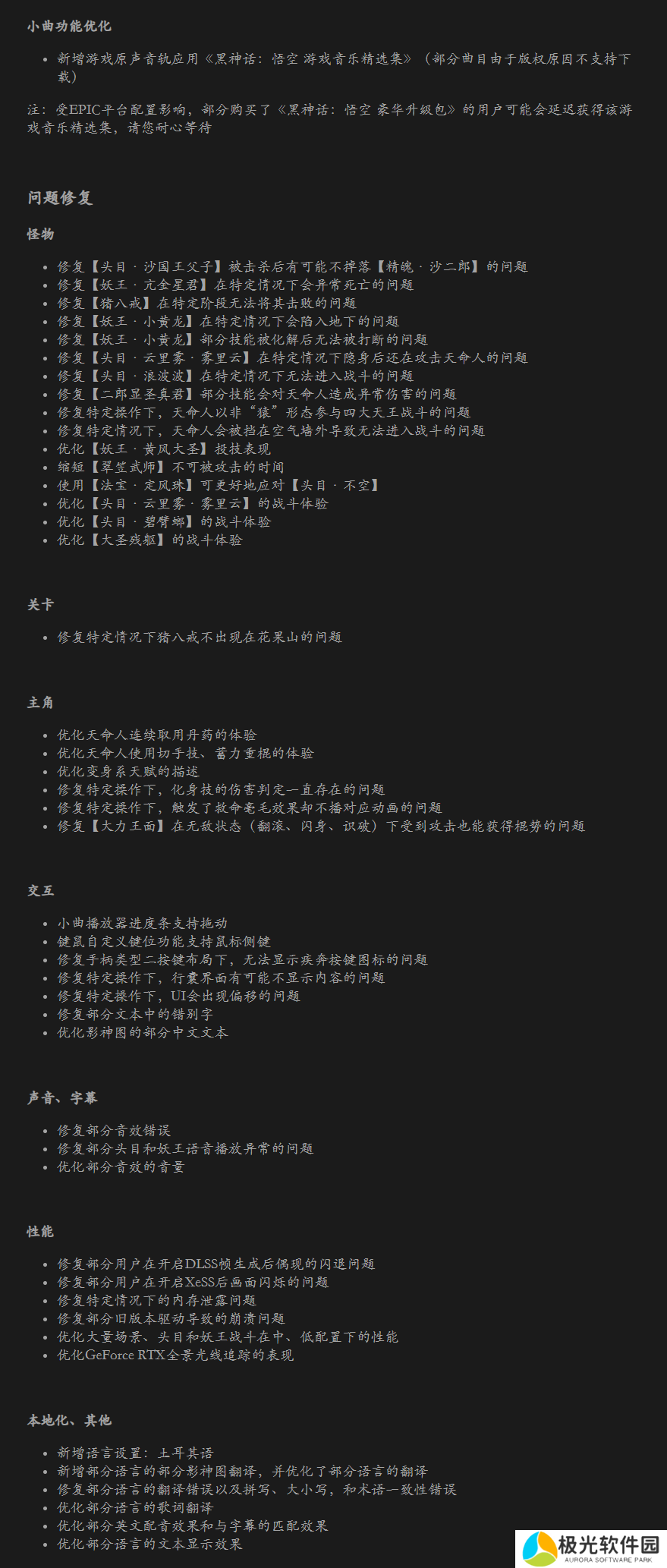《黑神话:悟空》发布最新公告,将更新「Boss 挑战模式」、「行旅图」功能和全新披挂「彩金套装」等!新内容现已上线Epic平台,其它平台亦将陆续更新。以下是本次更新的主要内容以及具体内容,请点击大图查看哦!