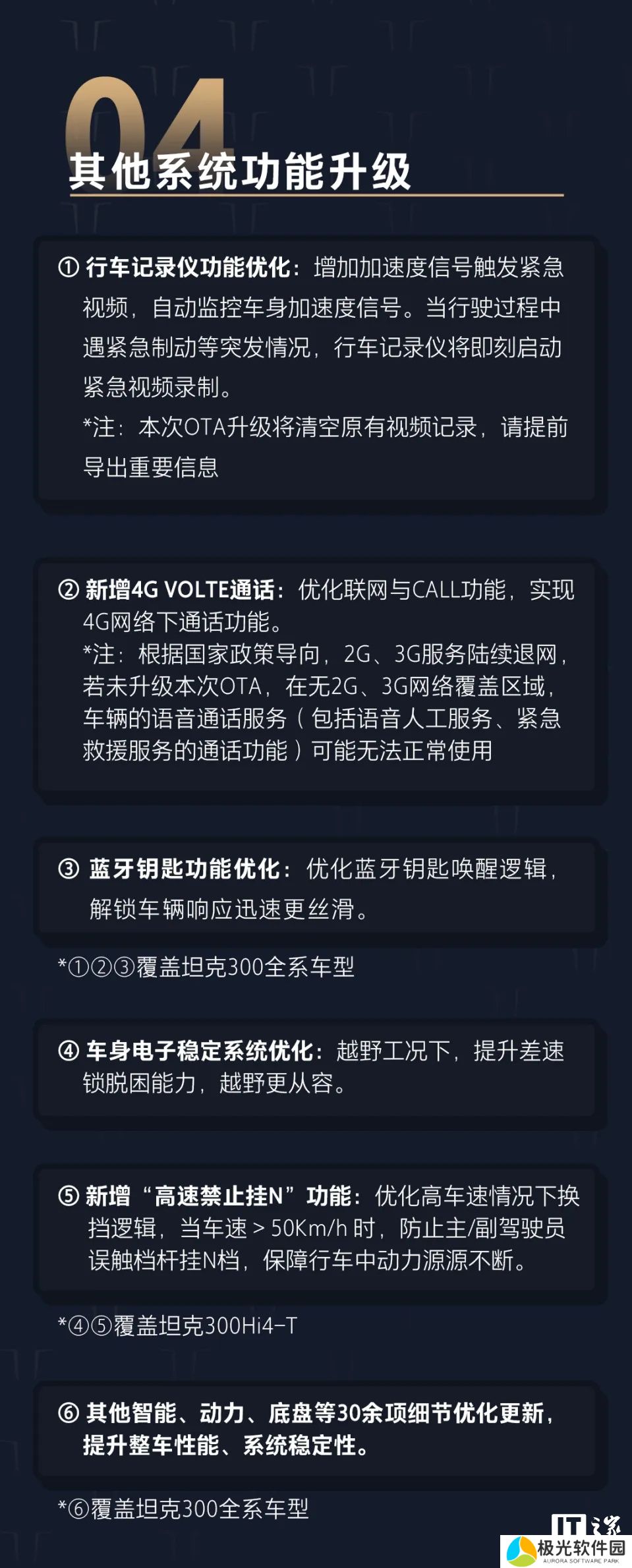 本站 1 月 8 日消息,长城汽车今日宣布,坦克 300 第 13 次 OTA 全网推送。