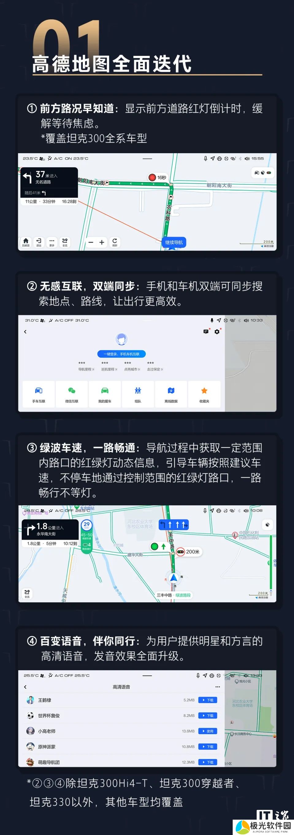 以下功能除坦克 300Hi4-T、坦克 300 穿越者、坦克 330 以外,其他车型均覆盖: