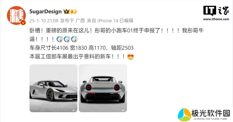本站 1 月 10 日消息,今晚发布的工信部申报名单中,一款非常特别的跑车 —— 出自江西江铃集团新能源汽车有限公司的“羿驰牌 01”首次现身。而根据博主 SugarDesign 的说法,这款新车就是“工匠派”团队打造的双门双座纯电跑车“小跑车”SC-01。