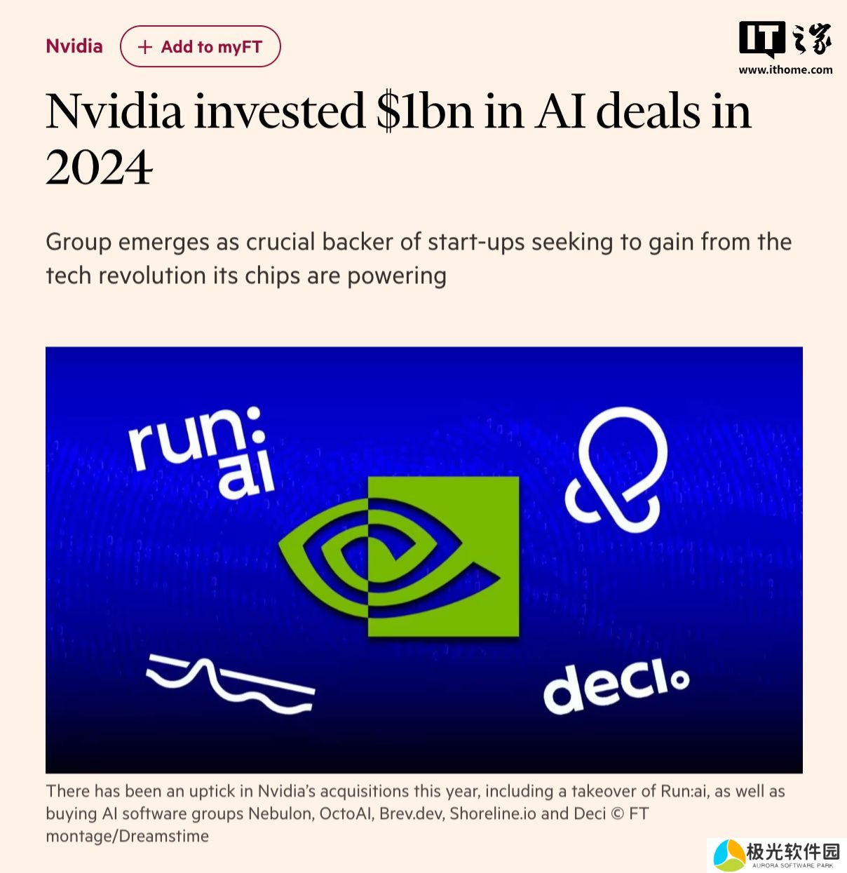 本站 1 月 2 日消息,据英国《金融时报》1 日报道,英伟达在刚刚过去的 2024 年向人工智能初创企业投入了 10 亿美元(本站备注:当前约 73.16 亿元人民币)资金,成为推动 AI 革命的重要支持者,而这场革命正是由其芯片技术驱动的。