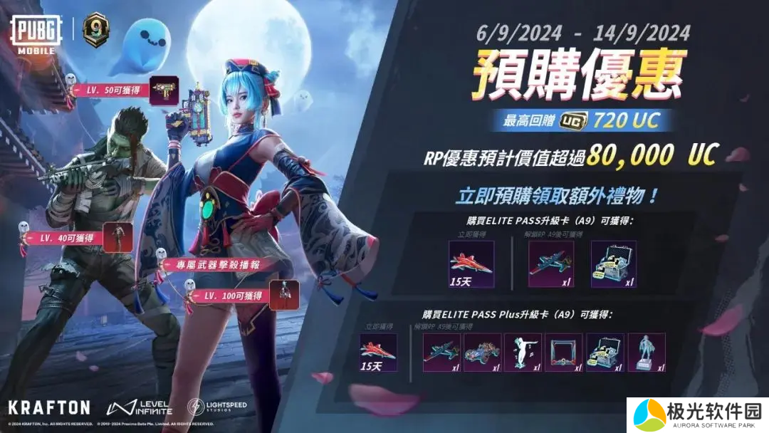 RPA9预购也已经开启了9月6日-9月14日期间,特种兵可选择ELITEPASS或ELITEPASSPlus升级卡进行预购,版本更新后即可领取绯月流云战斗机等福利。