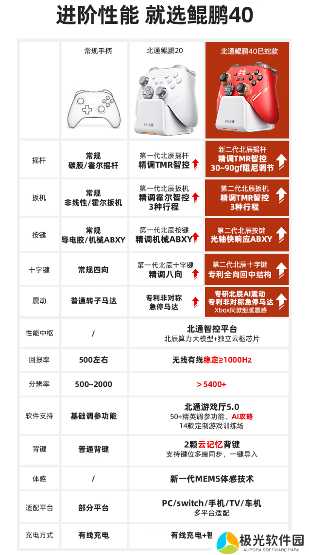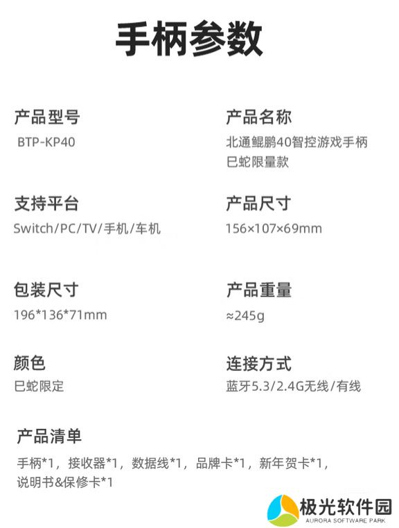 本站附北通鲲鹏40游戏手柄规格如下: