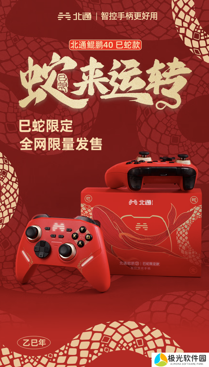 京东北通鲲鹏 40 手柄“巳蛇限定版”蛇纹元素丝印 | 搭 TMR 阻尼可调摇杆券后 309 元领 20 元券
