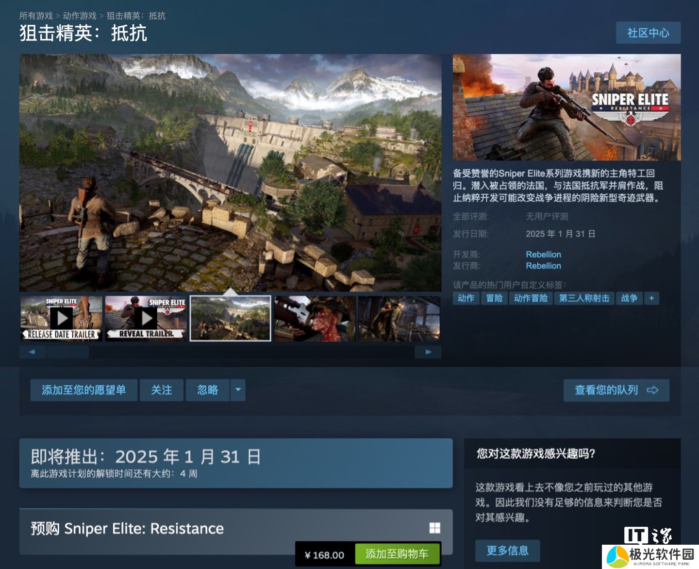 本站 12 月 30 日消息,开发商 Rebellion 宣布《狙击精英》系列 IP 最新作《狙击精英:抵抗》将使用 Denuvo 防篡改反作弊技术。这款游戏将于2025年(明年)1月31 日登陆 PlayStation 5、Xbox Series S|X、PlayStation 4、Xbox One 和 PC(Steam 和 Epic)平台。