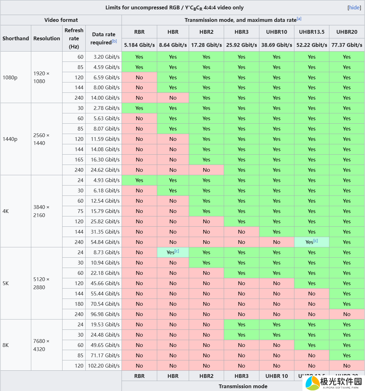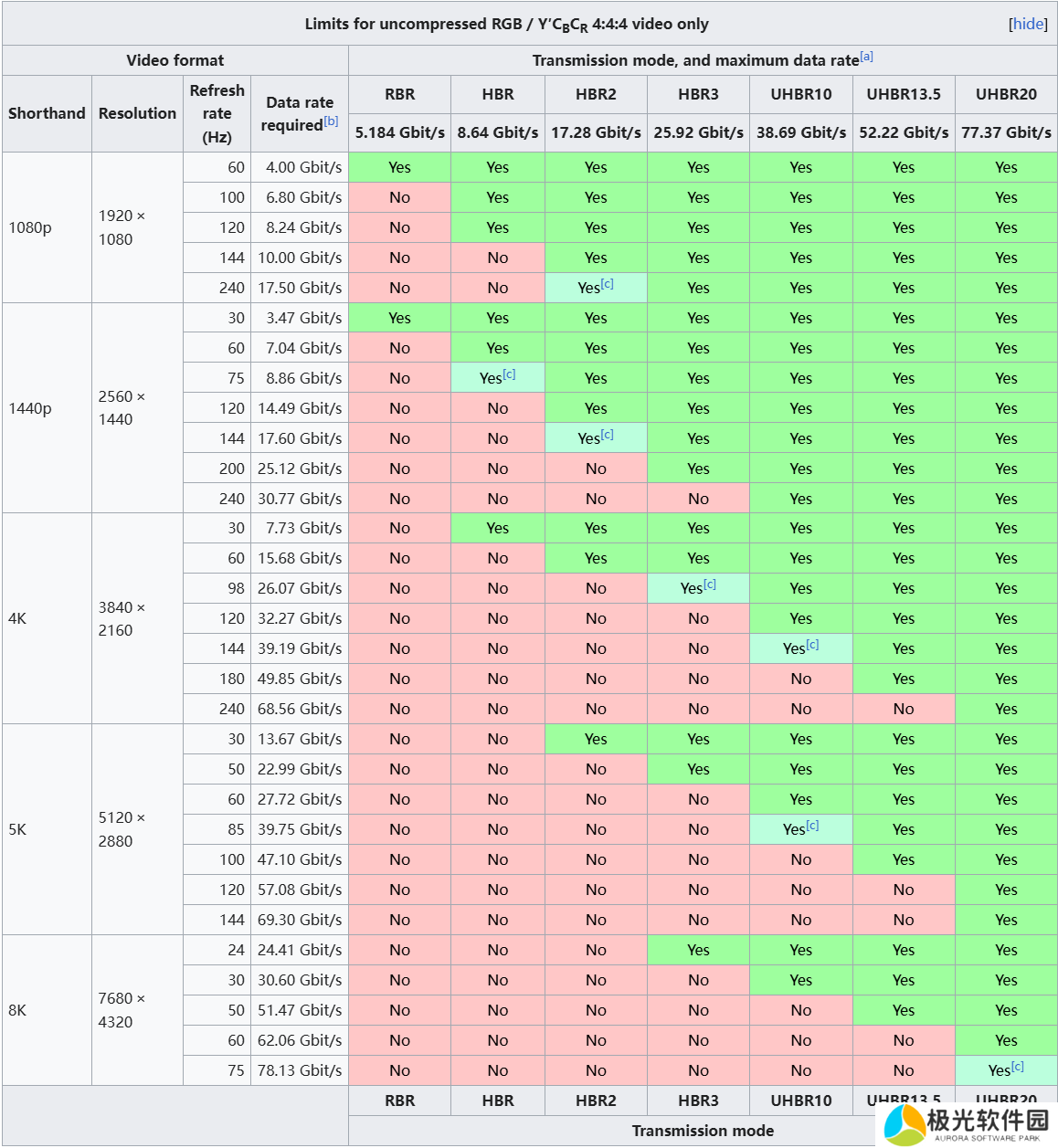 本站注:UHBR20 无需 DSC 压缩即可实现4K 240Hz 10bit 显示输出,单通道带宽提升到 20 Gbps,总带宽可达 80 Gbps,当然最低也要求 DP80 线材。
