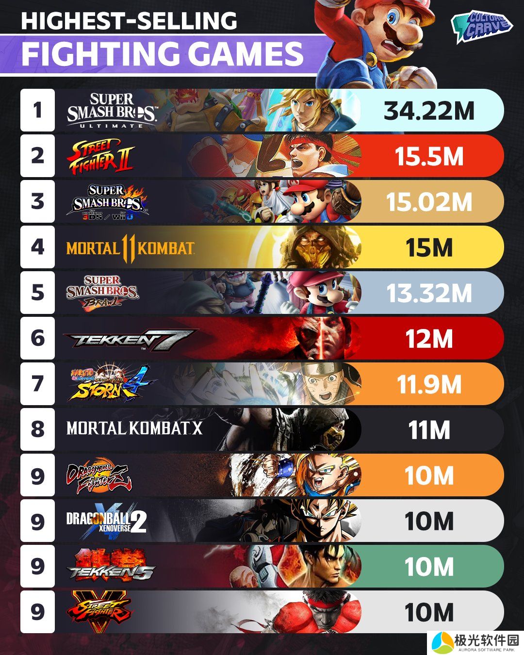 这并不是说这份榜单上没有一些令人惊讶之处。谁能想到一款以《火影忍者》为题材的格斗游戏会排在该系列一些元老级作品之上呢?又或者说,榜单底部出现了四方并列的情况,因为有四款格斗游戏都稳稳地售出了1000万份。