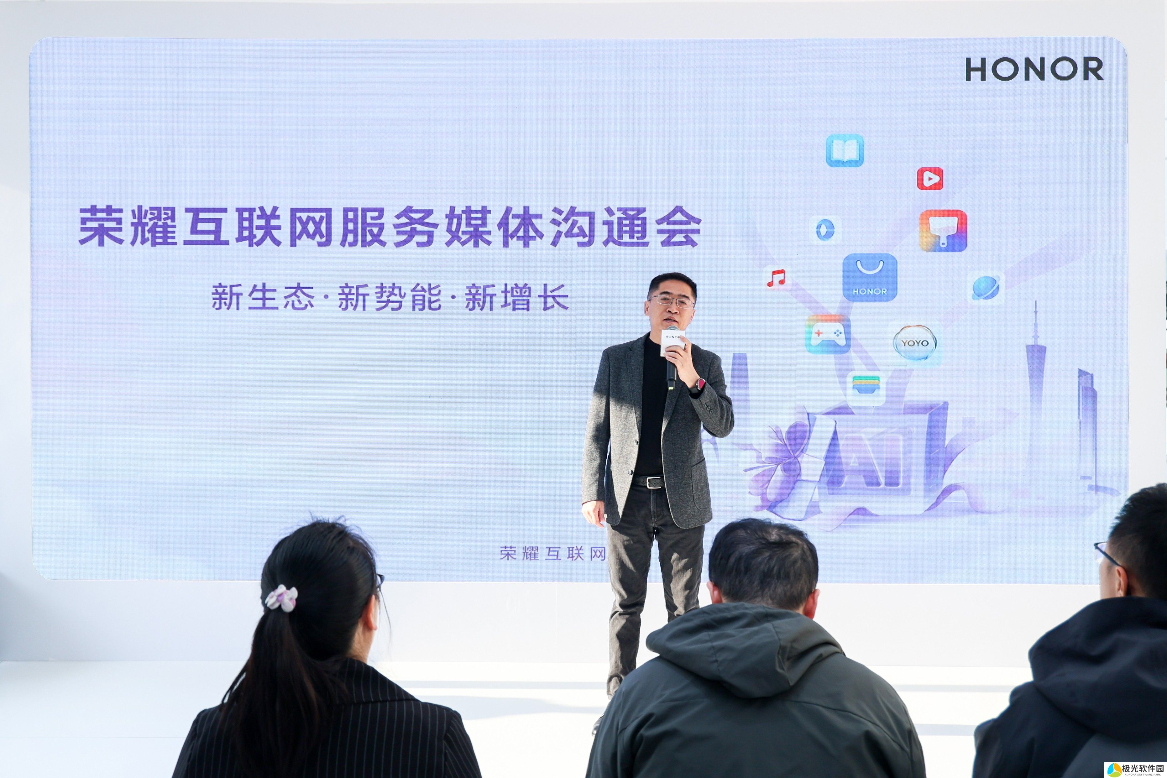12月19日,荣耀互联网服务以“新生态 新势能 新增长”为主题的媒体沟通会在广州举行。荣耀消费者云业务部部长孙建发、广东荣耀业务部部长任旭隆、荣耀云业务战规与营销总监王冠、广东荣耀零售主管苏彤出席,现场分享了荣耀互联网服务发展战略、AI等技术创新及优质体验。