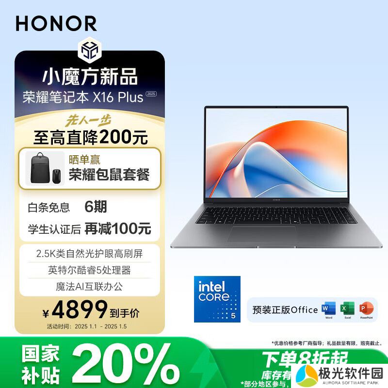 京东 2025 款荣耀笔记本 X16 Plus4879 元起直达链接