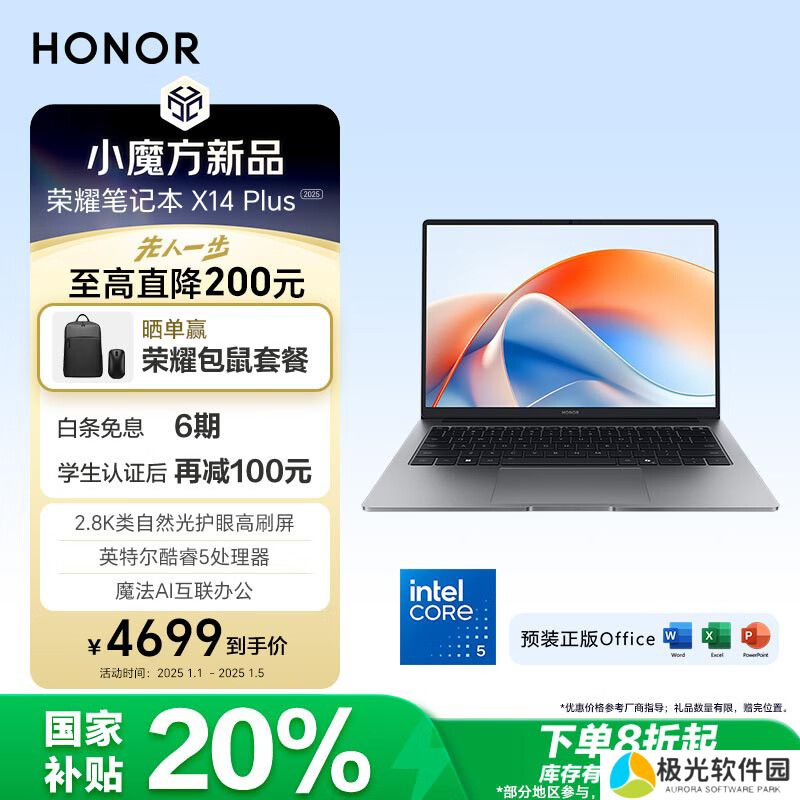 京东 2025 款荣耀笔记本 X14 Plus4679 元起直达链接