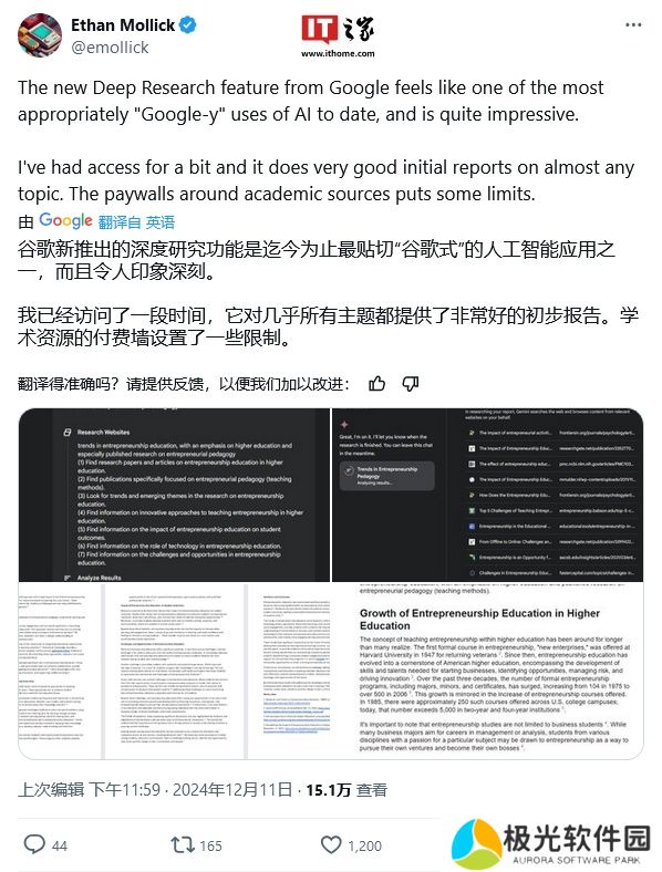 本站 12 月 21 日消息,谷歌公司本周五发布公告,宣布旗下 Gemini AI 的深度研究模式(in-depth research mode),现在已支持中文等 40 多种语言。