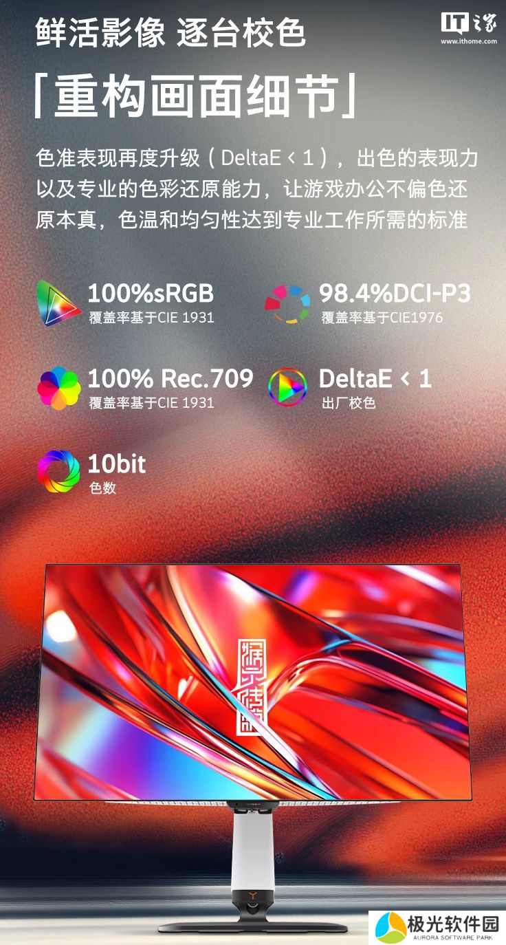 这款显示器配备的WOLED面板支持以3840x2160分辨率240Hz或1920x1080分辨率480Hz分辨率显示,显示器响应速度0.03ms,典型亮度 275尼特,亮度至高1300尼特,显示器支持10-Bit色彩,覆盖100% sRGB、98.4% DCI-P3、100% Rec.709色域。